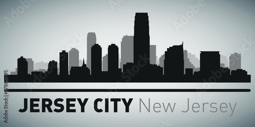 © Dima, Naklejka premium The city skyline. Jersey City. Silhouettes of buildings. Vector on a gray background