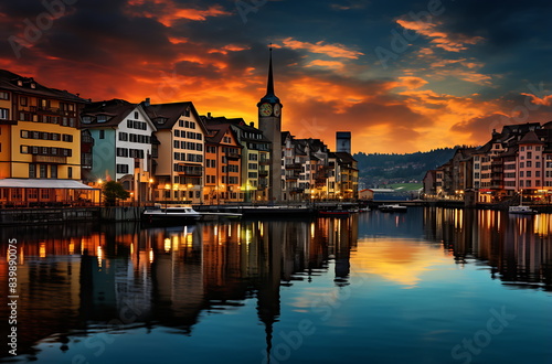 © imam, Obraz premium the city skyline of dubai on a lake, generative ai