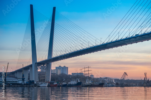 © vvicca, Naklejka premium the City skyline with views of the Golden bridge and the ships in the Bay.