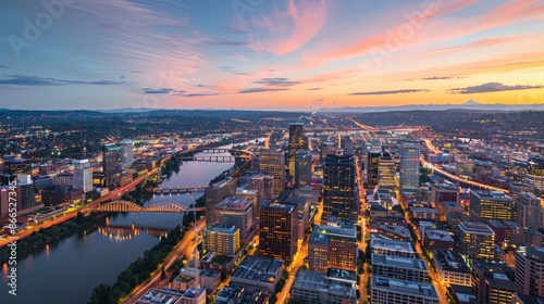 Fototapeta premium The city thrives on innovation, with tech hubs and startups driving economic...