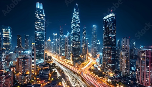 Obraz premium The City Where Lights Dance Across the Skyline, Illuminating the Night