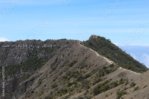 © Fadi, Naklejka premium the clear sky above the volcanic crater that surrounds the clouds