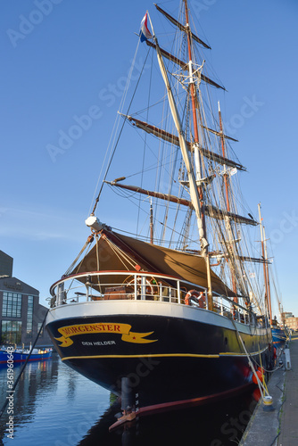 Fototapeta premium The clipper 'Morgenster' moored in the harbour of Den Helder