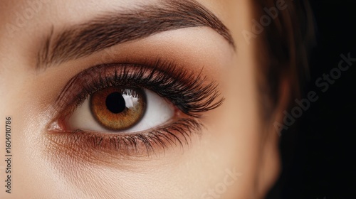 Obraz premium The close-up of a beautifully detailed brown eye with long lashes.