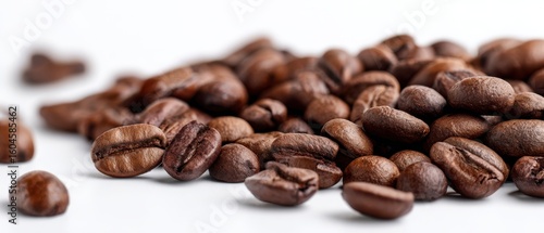 Naklejka premium The Close-Up of Freshly Roasted Coffee Beans on a White Background