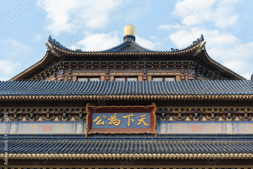 © ZHIJIAN, Naklejka premium The close-up of Sun Yat-Sen Memorial Hall in Guangzhou ,China.The Chinese characters on the hall means "the world community is equally shared by all."