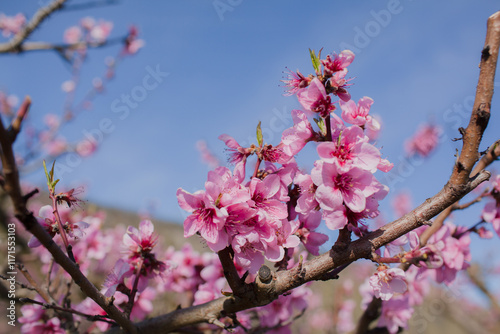 © Вероника Зеленина, Obraz premium The close up pf the blooming pink flower on the tree