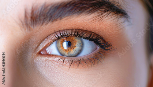 Obraz premium The closeup image frames a womans eye, emphasizing her brown pupil with...