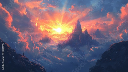 © Bundi, Fototapeta premium The clouds are illuminated by beams of light.