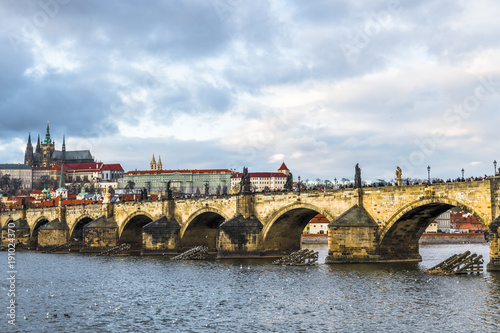 Obraz premium The clouds, bridge, river, castle