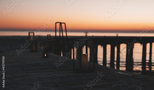 Obraz premium The cold winter morning at the round pier in Denmark