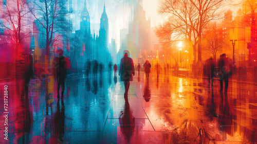 Naklejka premium The collage of urban life, where scenes from different areas are intertwined...