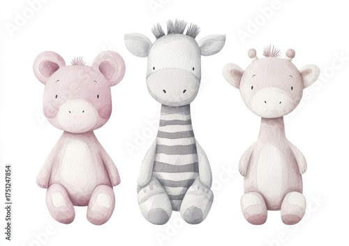 Obraz premium The collection includes watercolor illustrations of safari animals...