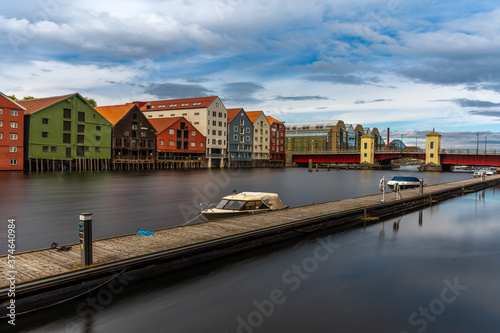 © Luis, Obraz premium The colorful and iconic old city wharves along the Nidelva river in Trondheim, Trondelag, Norway. Symbol of the historical role of Trondheim as a merchant city.