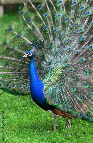 Obraz premium The colorful peacock with the open tail