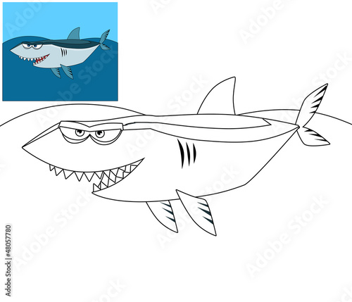 © honeyflavour, Fototapeta premium The coloring page - happy shark