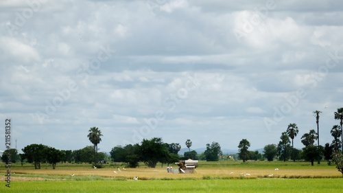 © visa, Obraz premium The combine harvester in paddy field in Thailand