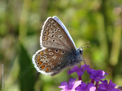 Obraz premium The common blue butterfly (Polyommatus icarus), male perching on verbena
