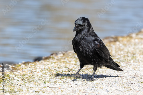 Fototapeta premium The Common Raven, Corvus corax at Kleinhesseloher Lake in Munich, Germany