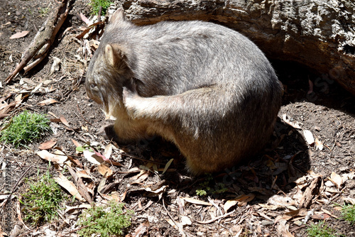 © susan flashman, Naklejka premium The Common Wombat has a large nose which is shiny black, much like that of a dog. The ears are relatively small, triangular, and slightly rounded