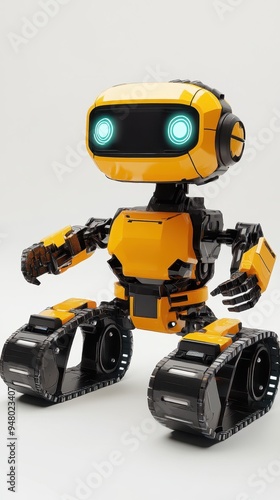 Fototapeta premium The compact AI robot moves forward using its caterpillar tracks, showcasing...