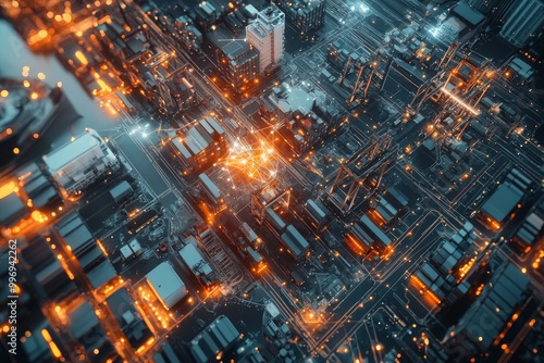 © typepng, Obraz premium The concept illustration shows a network map of the global supply chain with logistics routes