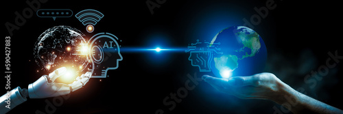 Fototapeta premium The concept of technology using AI to help with work AI Learning and artificial intelligence business, modern technology, internet, and network.Elements of this image furnished by NASA