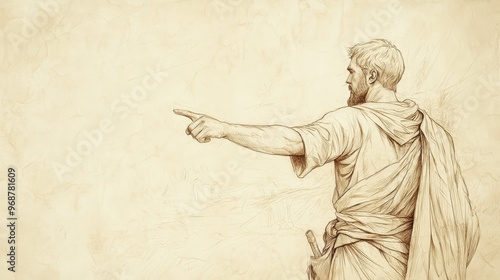 © T Studio, Fototapeta premium The Conquest of Northern Canaan: Joshua's thanksgiving prayer for God's guidance and support, biblical illustration, Beige Background
