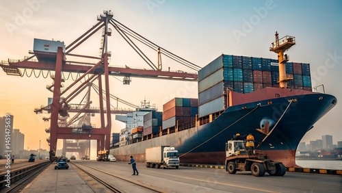 © picbox, Fototapeta premium the container vessel during discharging