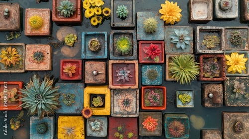 © dewi, Obraz premium The containers are arranged in a mosaic pattern