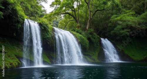 © sevenSkies, Obraz premium The cool spray of a waterfall cooling off a lush green environment