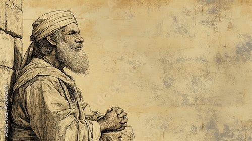 Fototapeta premium The Covenant Renewed at Shechem: Joshua reminding people of God's faithfulness and covenant with ancestors, biblical illustration, Beige Background