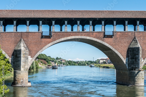 Fototapeta premium The covered bridge over the Ticino river in Pavia