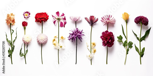 Fototapeta premium The creative layout was made with beautiful flowers on white background - generative ai.