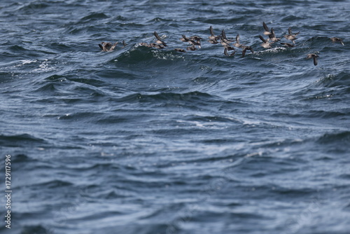 © feathercollector, Obraz premium The crested auklet (Aethia cristatella) is a small seabird of the family Alcidae, distributed throughout the northern Pacific and the Bering Sea. This photo was taken in Hokkaido, Japan.