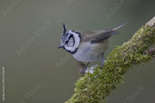 © Miroslav Srb, Obraz premium The Crested Tit (Lophophanes cristatus) is a charming and distinctive small passerine bird belonging to the tit family. Its most striking feature, and what gives it its name, is erectile crest on head