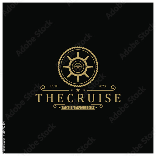 Obraz premium The cruise logo,ship steering logo, boat, yacht, rope, maritime, anchor. Logo...