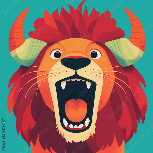 © AI-Stocks, Obraz premium The cute orange cartoon lion, game character, Illustration