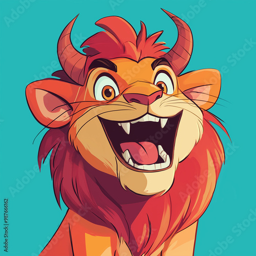 © AI-Stocks, Obraz premium The cute orange cartoon lion, game character, Illustration