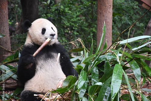 © Tracy, Fototapeta premium the cute panda is eating bamboo