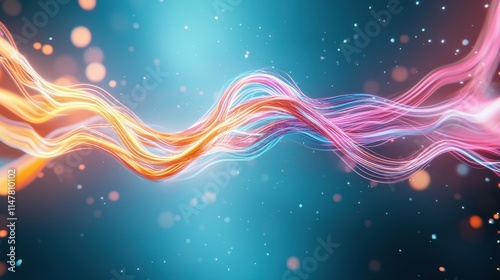 © Sirada, Obraz premium The 3D render features a futuristic cyber space environment with vibrant neon lines intertwining and pulsating, creating a visually stunning and immersive digital landscape.