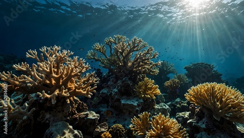 Fototapeta premium The dance of light and shadows on a coral reef in an underwater scene ai_generated
