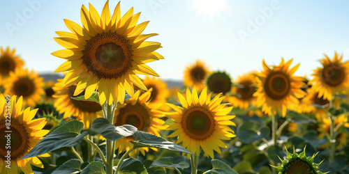 Obraz premium The Dancing Sunflowers: A field of bright yellow sunflowers bob and sway gently in the warm summer breeze, their heads nodding towards the brilliant sun high in the sky