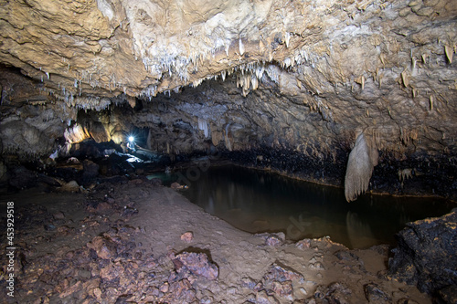 © Semoga, Fototapeta premium The dark cave is refracted by the flashlight