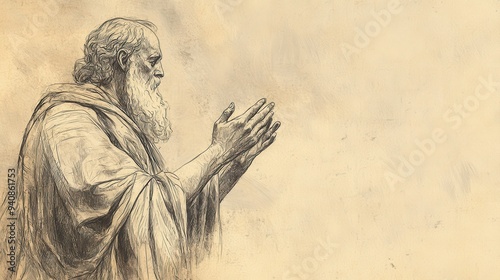 © T Studio, Fototapeta premium The Death of David and the Reign of Solomon: Bible Wall Art Depicting Solomon’s Prayer at Gibeon and God’s Grant of Wisdom, Biblical Illustration on Beige Background