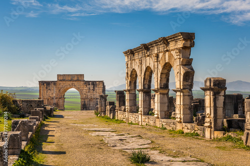 Fototapeta premium The Decumanus Maximus and the Triumphal Arch, Volubilis, Morocco