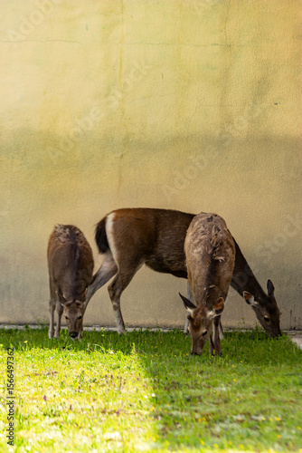 Fototapeta premium The deer hiding in the shadows to eat grass