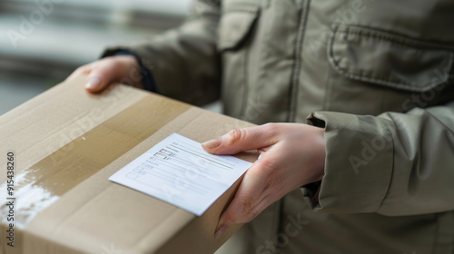 © yailek, Fototapeta premium The delivery man is holding a cardboard box.