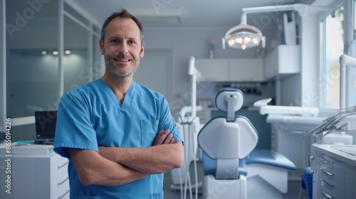 © Marta B, Obraz premium The dentist in blue uniform