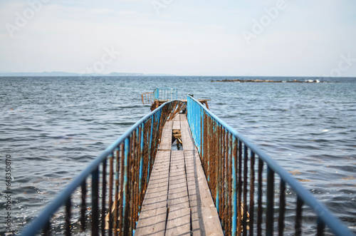 © k.yamauchi, Naklejka premium The deserted iron road leads to the sea